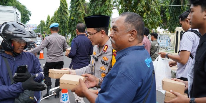 SITUBONDO – Menjelang waktu berbuka puasa, suasana di depan Mapolres Situbondo mendadak ramai dan penuh kehangatan. Tak hanya melibatkan personel kepolisian, Kapolres