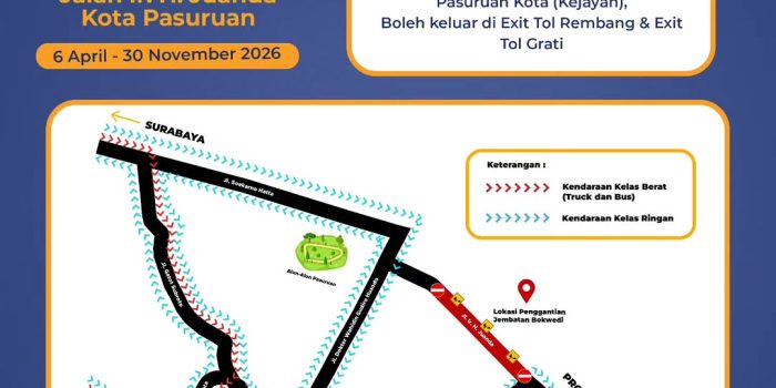 KOTA PASURUAN — Penutupan total Jalan Ir H Juanda Kota Pasuruan resmi diberlakukan mulai Rabu (08/04/2026). Kebijakan ini dilakukan sebagai dampak dari