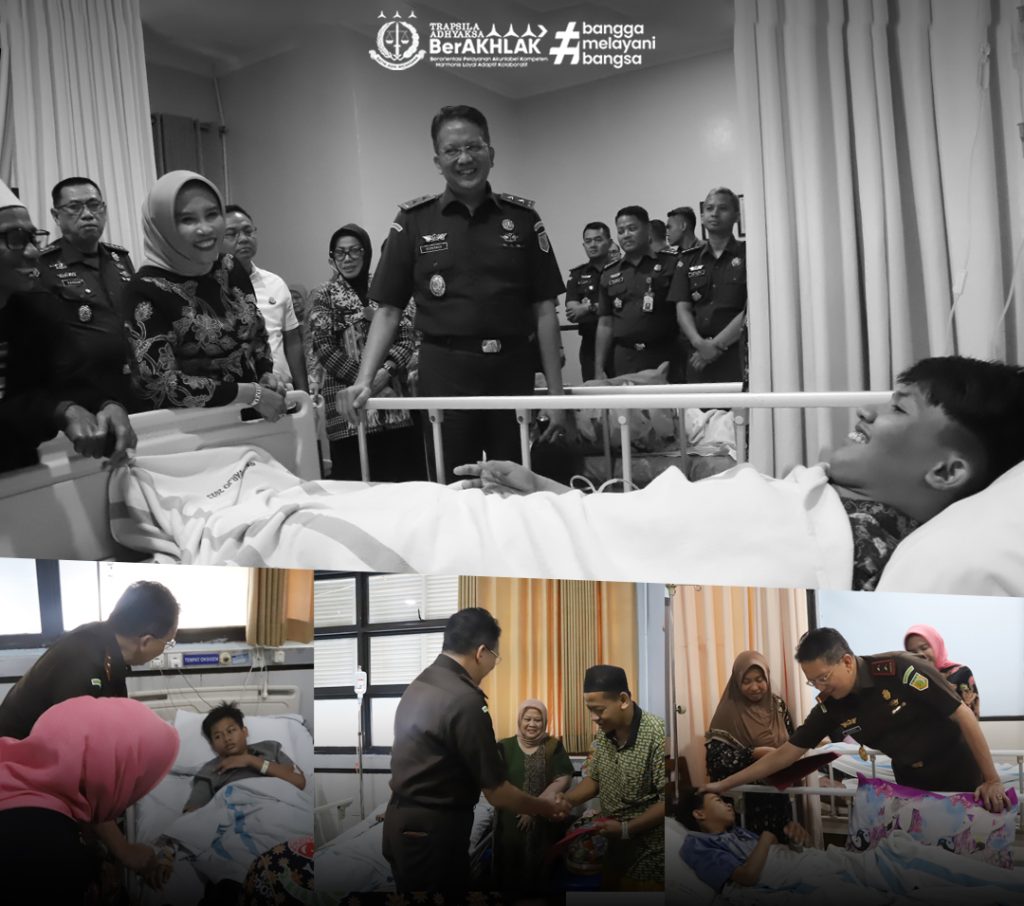 Sidoarjo — Kepala Kejaksaan Tinggi Jawa Timur, Dr. Kuntadi, S.H., M.H., menjenguk para korban reruntuhan bangunan Pondok Pesantren Al-Khoziny Sidoarjo yang tengah dirawat di Rumah Sakit Notopuro Sidoarjo, Selasa (7/10/2025).