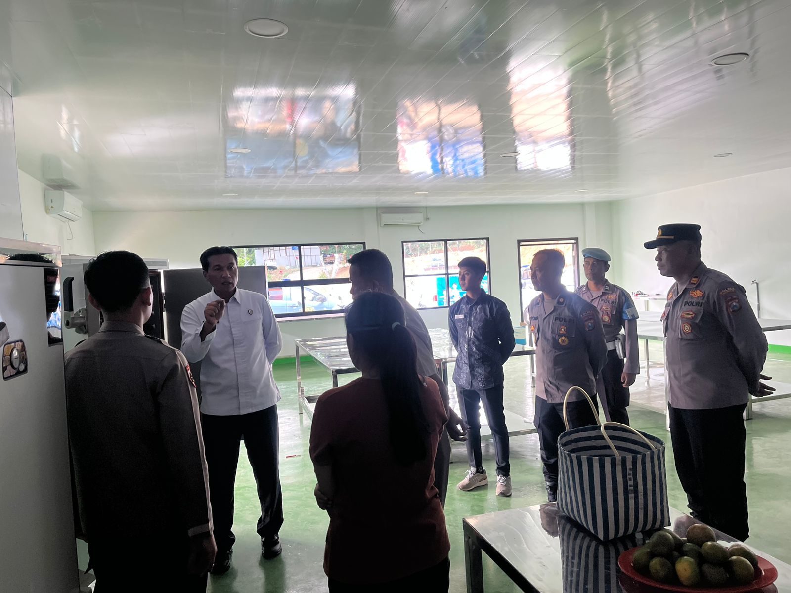 Dalam kesempatan tersebut, tim mengecek ruang sejumlah ruangana, mulai dari dapur, area penerimaan bahan baku, penyimpanan, ruang persiapan dan pengolahan makanan, serta area pemorsian dan pengemasan. Selain itu, terdapat juga ruangan pendukung seperti ruang kantor staf, ruang rapat, ruang konsultasi gizi, serta fasilitas sanitasi dan area pendukung logistik.