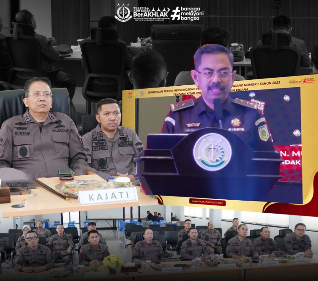 Magetan – Kepala Kejaksaan Tinggi Jawa Timur, Dr. Kuntadi, S.H., M.H., bersama Kepala Kejaksaan Negeri Magetan, Yuana Nurshiyam, S.H., M.Hum., CSSL dan jajaran mengikuti kegiatan Bimbingan Teknis (Bimtek) “Menyongsong Penerapan Undang-Undang Nomor 1 Tahun 2023 tentang Kitab Undang-Undang Hukum Pidana (KUHP)” secara daring di Aula Kejari Magetan, Kamis (16/10/2025).