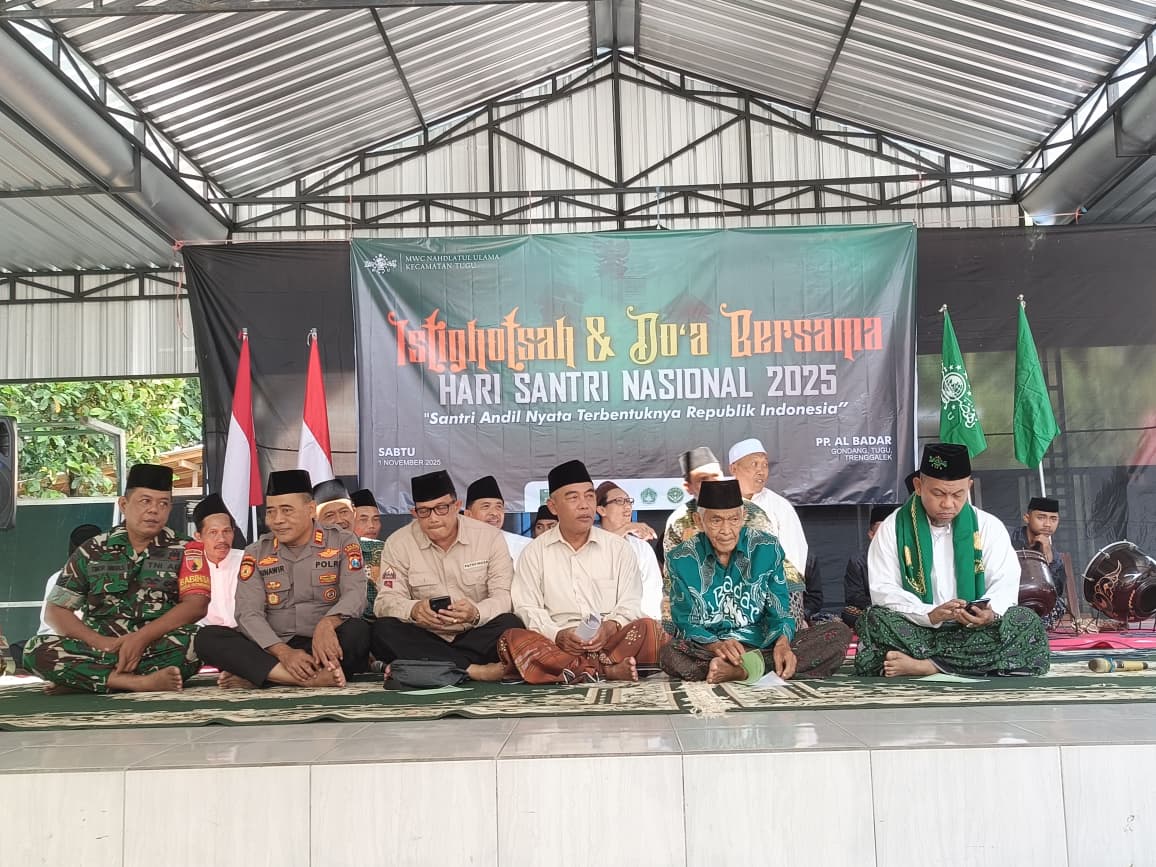 Polres Trenggalek – Jajaran Kepolisian turut berpartisipasi meramaikan istigasah dan doa bersama dalam rangka memperingati Hari Santri Nasional Tahun 2025 yang diselenggarakan oleh MWC NU Kecamatan Tugu, Kabupaten Trenggalek. Sabtu, (01/11).