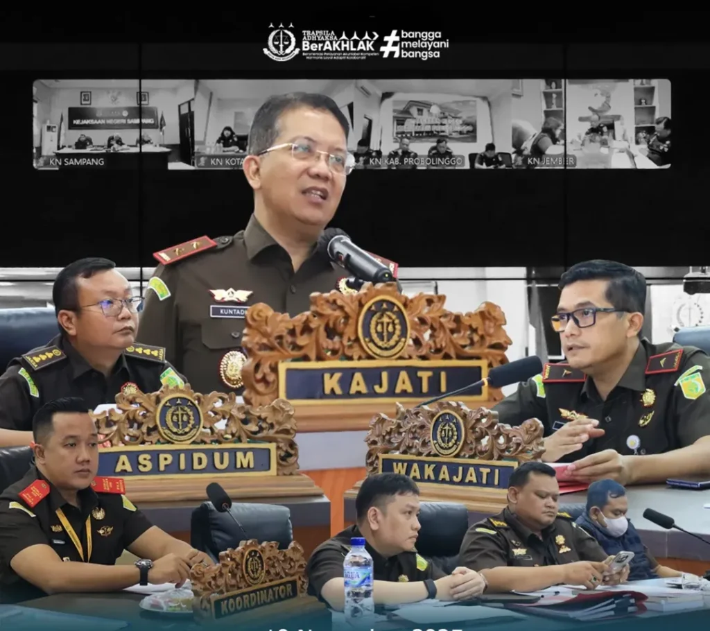 Surabaya – Kepala Kejaksaan Tinggi Jawa Timur yang diwakili oleh Wakajati Dr. Hari Wibowo, S.H., M.H., memimpin pelaksanaan ekspose 13 (tiga belas) perkara yang dilakukan penghentian penuntutan berdasarkan keadilan restoratif, dengan didampingi oleh Aspidum, Koordinator dan para Kasi di Bidang Pidum Kejati Jatim bersama dengan Kajari Surabaya, Kajari Kota Malang, Kajari Sampang, Kajari Kabupaten Probolinggo, dan Kajari Jember, Rabu (19/11/2025).