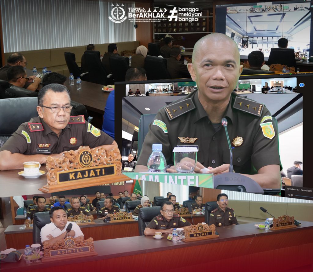 Surabaya – Kepala Kejaksaan Tinggi Jawa Timur Agus Sahat ST, S.H., M.H., didampingi Wakajati, Asisten Intelijen, Asisten Tindak Pidana Umum, Koordinator, dan pejabat eselon IV, mengikuti pengarahan khusus dari Jaksa Agung Muda Intelijen (Jamintel) Prof. Dr. Reda Manthovani secara daring di Ruang Rapat Kejati Jatim, Kamis (18/12/2025).