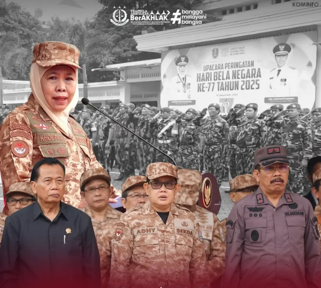 Surabaya – Kepala Kejaksaan Tinggi Jawa Timur yang diwakili oleh Wakajati Saiful Bahri Siregar, S.H., M.H., menghadiri Upacara Peringatan Hari Bela Negara ke-77 Tahun 2025 yang diselenggarakan oleh Pemerintah Provinsi Jawa Timur di Halaman Kantor Sekretariat Daerah Provinsi Jawa Timur, Jumat (19/12/2025).