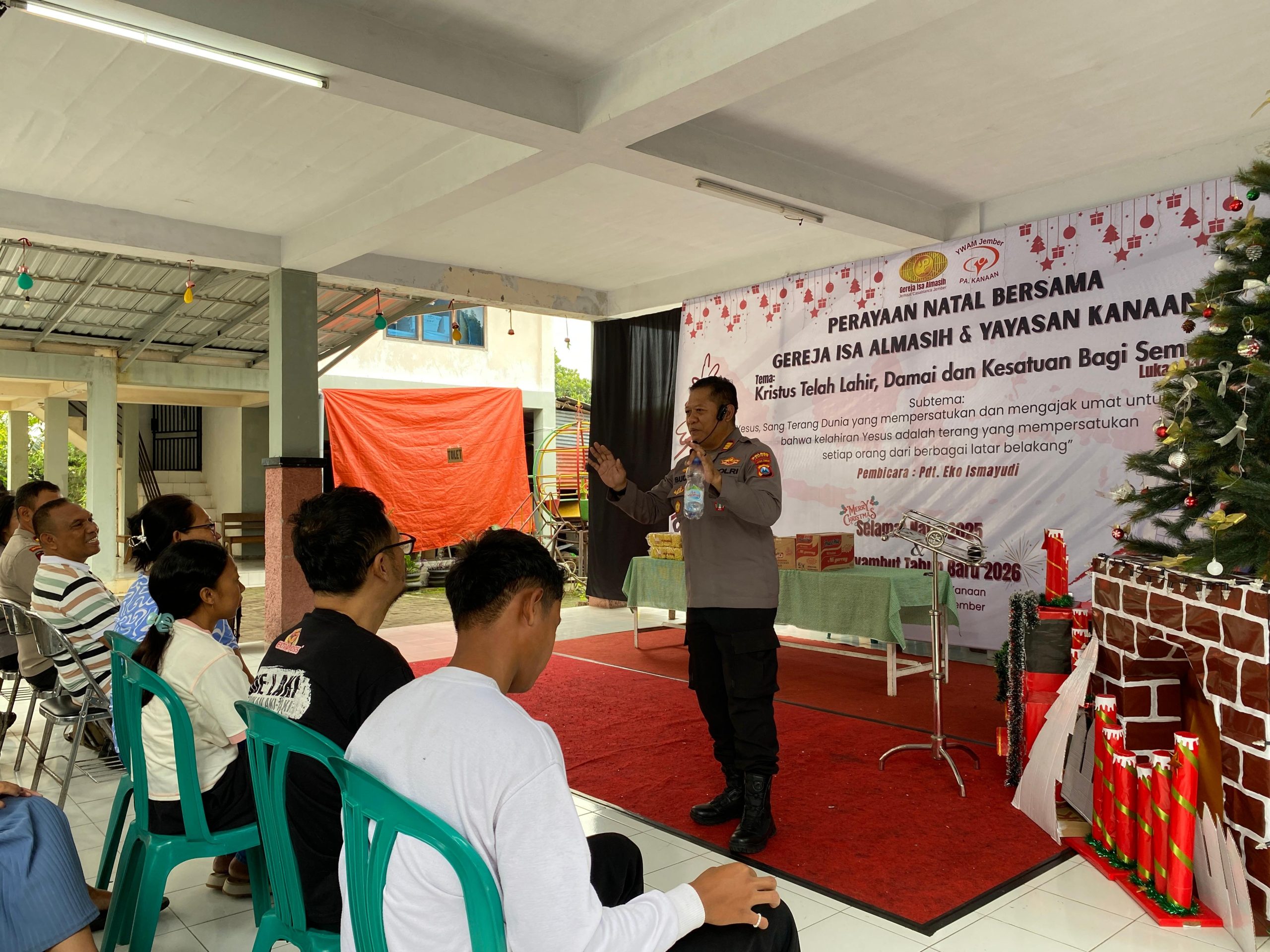 JEMBER – Dalam rangka menyambut perayaan Natal, Polres Jember Polda Jatim menggelar kegiatan sosial dengan berbagi kasih ke Panti Asuhan Kanaan di Kelurahan Gebang, Kecamatan Patrang, Kabupaten Jember,Jum’at, (19/12/2025)