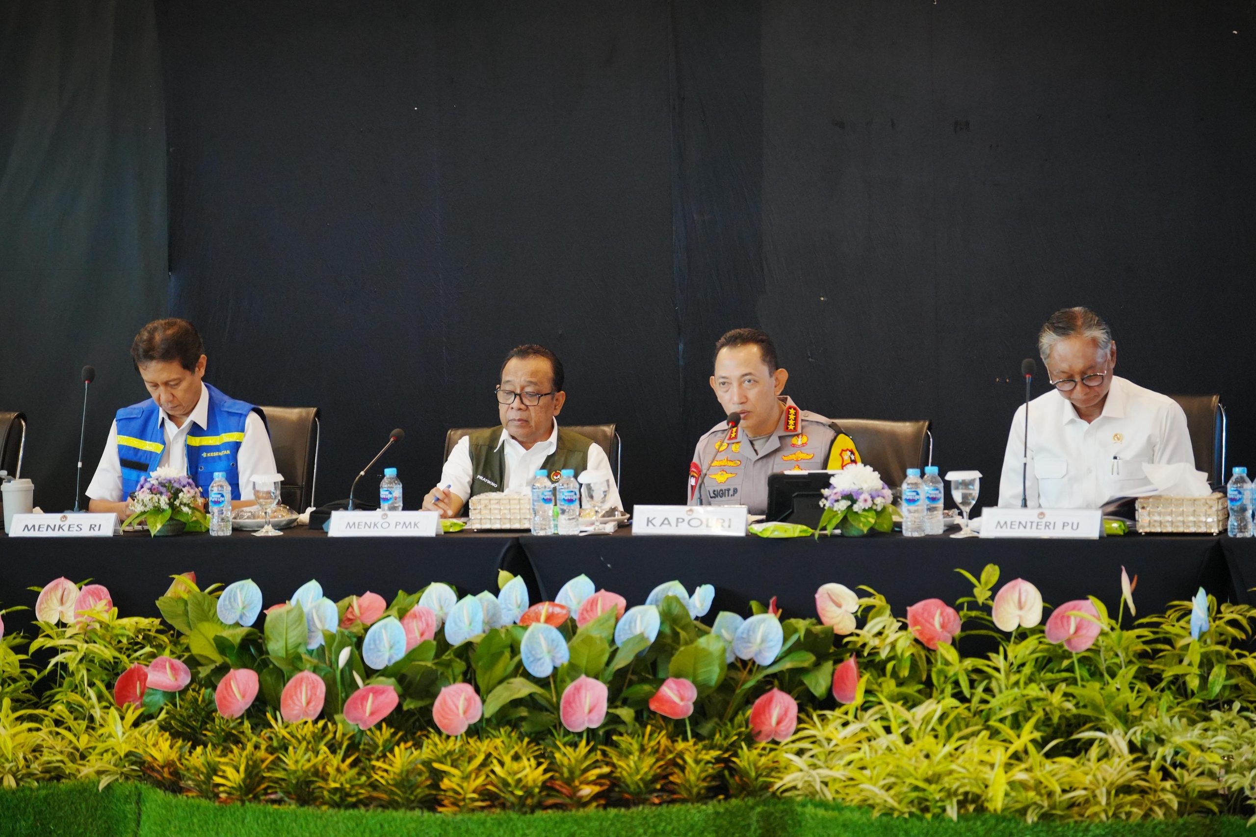 Dalam kunjungan ini, Kapolri bersama dengan Menko PMK Pratikno, Menteri PU Dody Hanggodo, Menkes Budi Gunadi Sadikin, serta perwakilan Basarnas, TNI, Kemenko Polkam, BNPB, dan pejabat Mabes Polri.