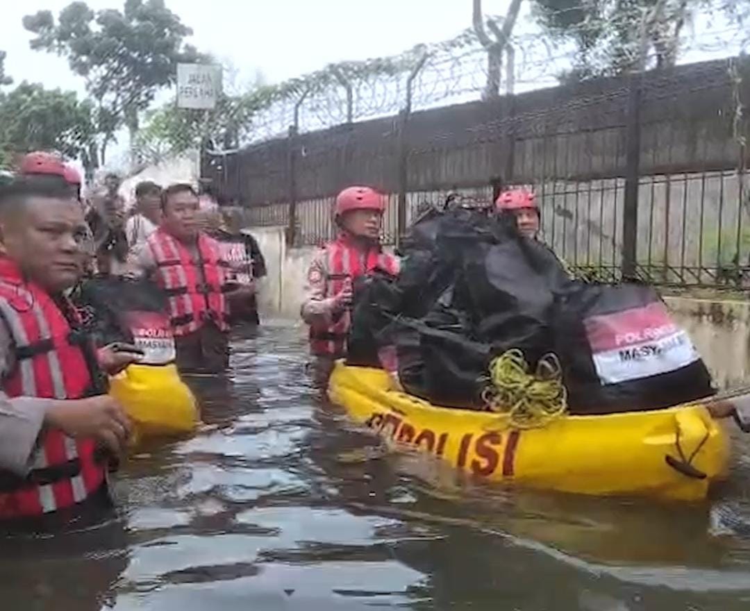 Polri Bergerak Tangani Banjir Cakung, Kerahkan 132 Personel, Perahu Taktis, Kendaraan 4×4, dan Dapur Lapangan Brimob