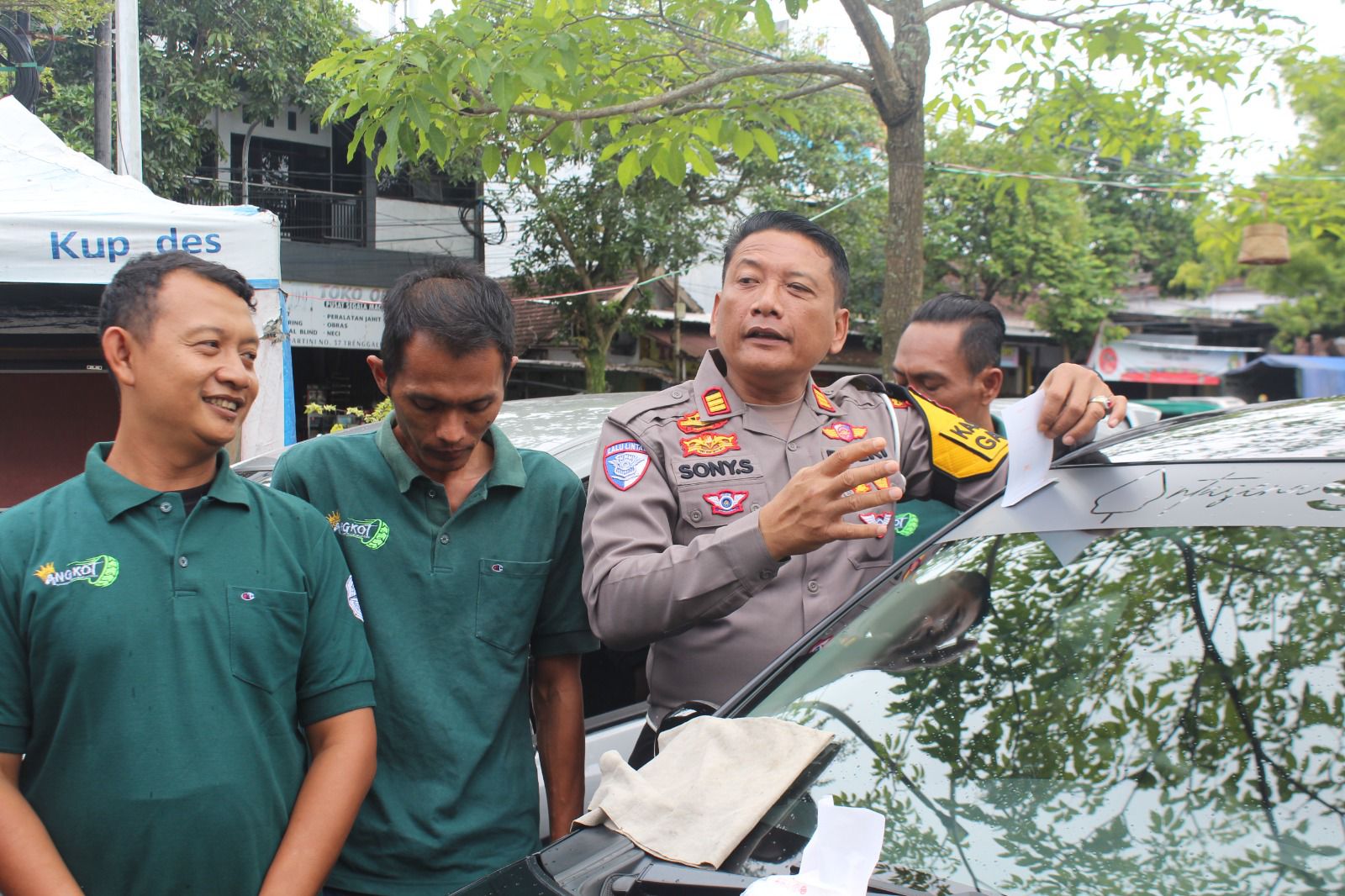 Tak berhenti disitu, AKP Sony juga meninjau dan mengecek langsung kendaraan para driver online khususnya roda empat yang biasa dipakai operasional sehari-hari. Mulai dari kebersihan hingga kelaikan kendaraan.
