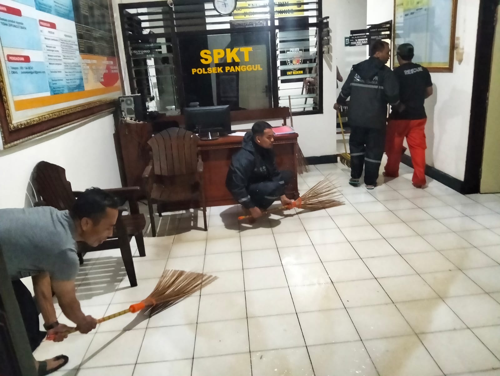 Kegiatan pembersihan ini dilakukan agar pelayanan masyarakat Polsek Panggul tidak terganggu, setelah sebelumnya sempat tergenang air akibat luapan air sungai yang berada di depan Mapolsek.
