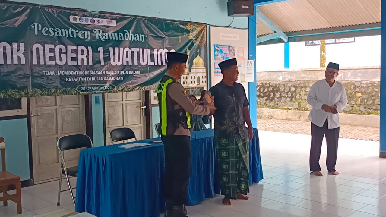 Pagi ini, sejumlah petugas kepolisian yang merupakan anggota dari Polsek Watulimo berkunjung ke SMK Negeri 1 Watulimo. Tak sekadar hadir, petugas juga turut serta menjadi salah satu pemateri utama dalam kegiatan Pondok Ramadan yang diikuti oleh seluruh siswa-siswi. Rabu, (25/2).
