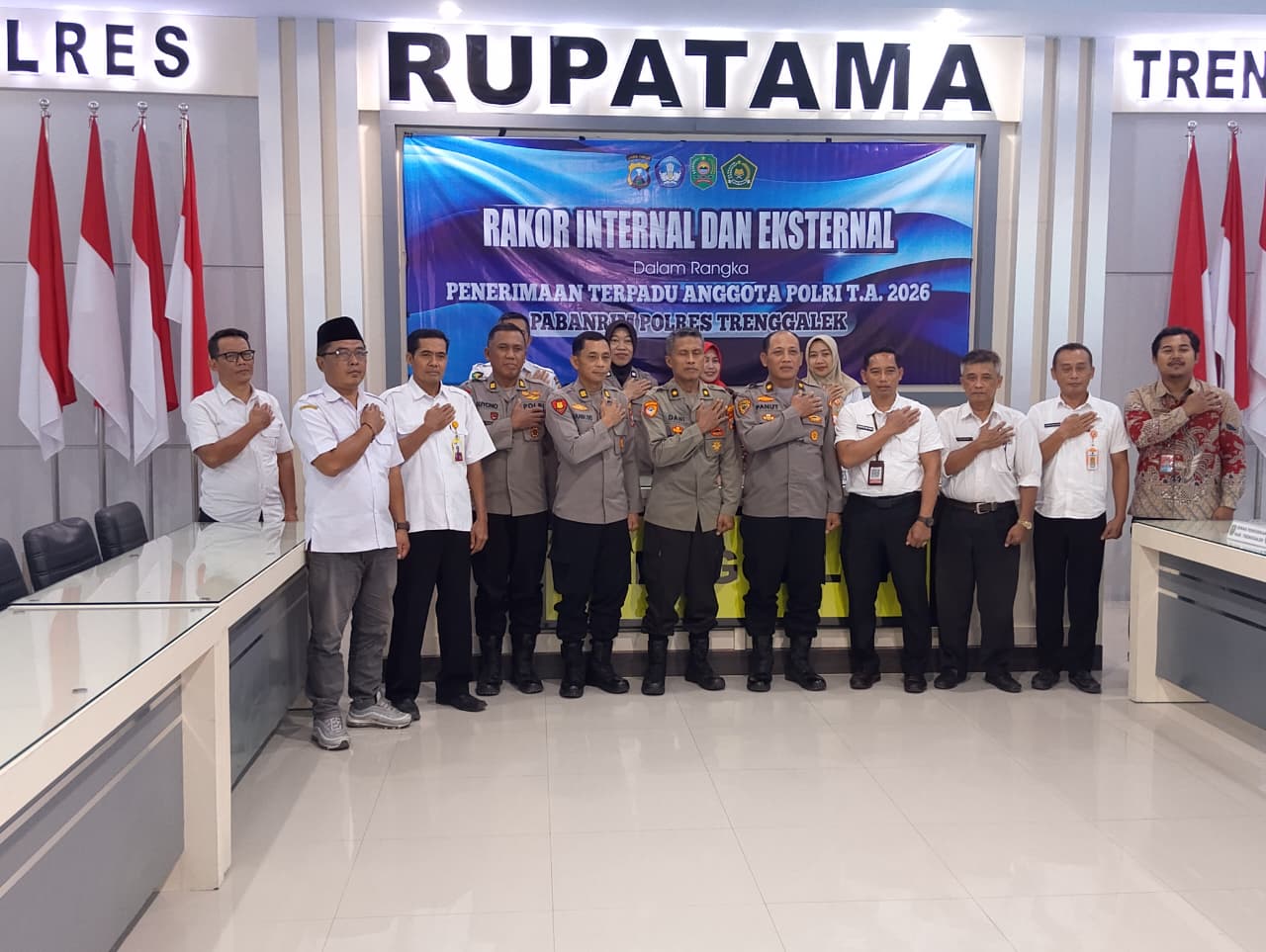 Guna memastikan proses rekrutmen berjalan lancar sesiao dengan SOP yang ada, Polres Trenggalek menggelar Rapat Koordinasi (Rakor) Internal dan Eksternal bersama instansi terkait dalam rangka penerimaan terpadu anggota Polri tahun 2026 di Rupatama Mapolres Trenggalek. Rabu, (11/3).