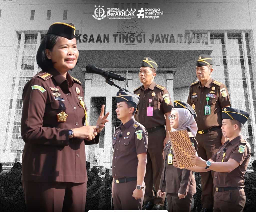 Surabaya – Asisten Perdata dan Tata Usaha Negara (Asdatun) Kejaksaan Tinggi Jawa Timur, Dr. Martha Parulina Berliana, S.H., M.H., memimpin pelaksanaan apel pagi yang diikuti oleh para Asisten serta seluruh pegawai di halaman Kantor Kejati Jatim, Senin (30/3/2026).